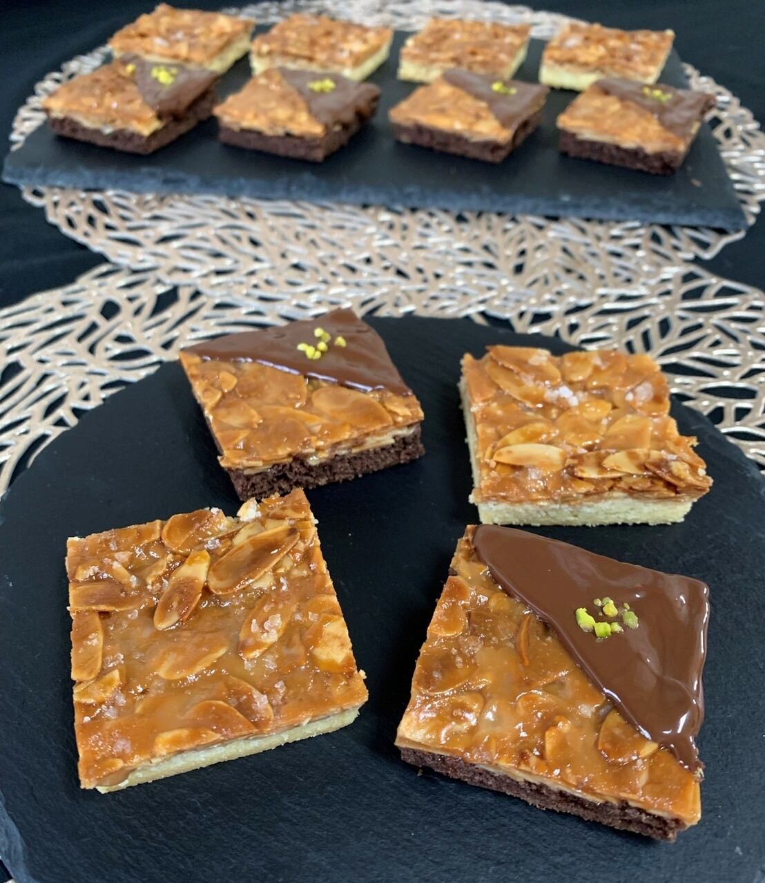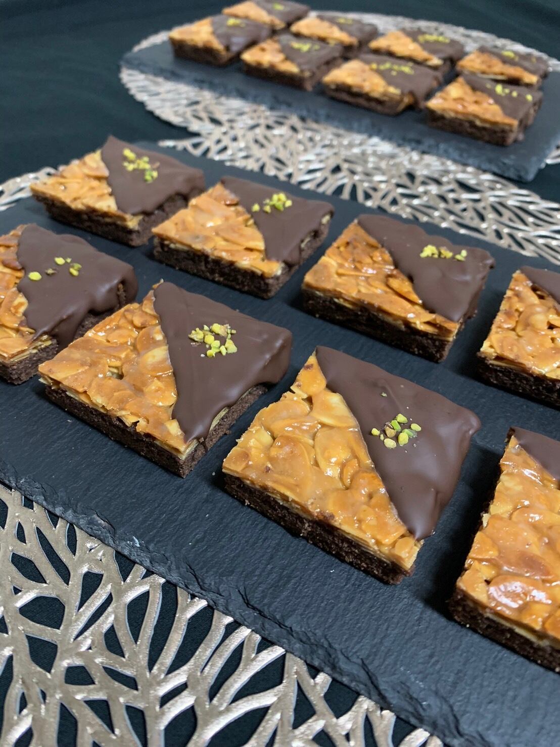 小麦粉(北海道産、)、アーモンド、チョコレート、バター、乳等主要とする食品、砂糖、蜂蜜、卵、ココアパウダー、ピスタチオ、塩